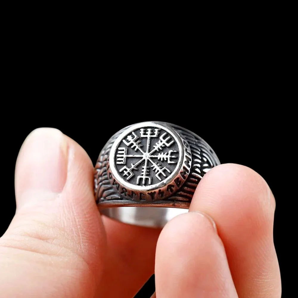 Der NordicSoul™ 316L Edelstahl Viking Vegvisir Kompassring ist mehr als nur Schmuck – er ist ein Symbol für Orientierung,