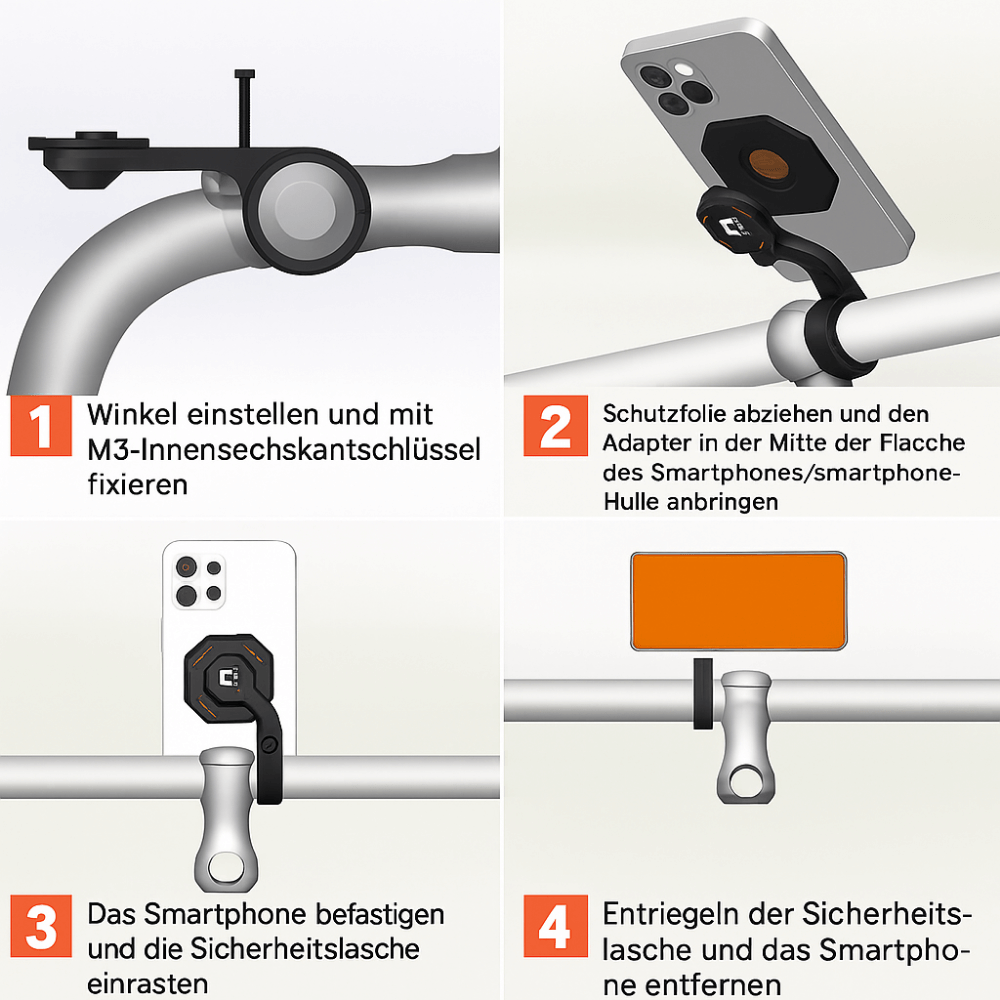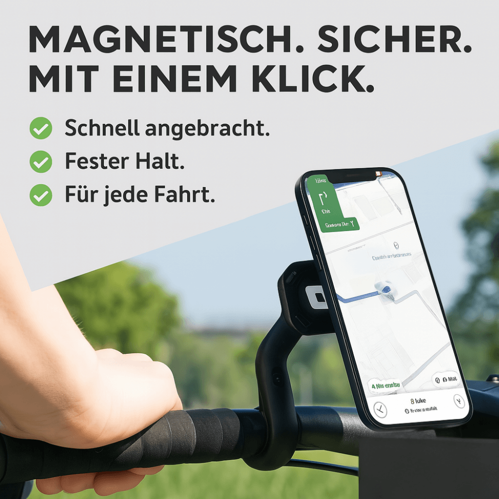 „Schnell montiert und super stabil! Mein iPhone sitzt perfekt – sogar bei Tempo 40 auf dem E‑Bike.“