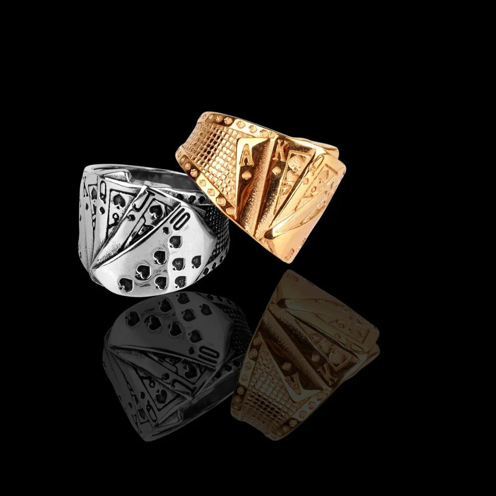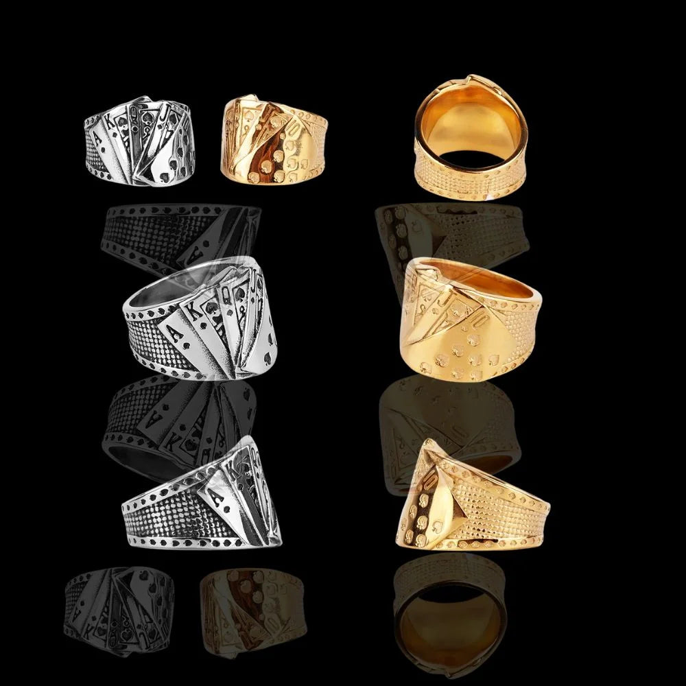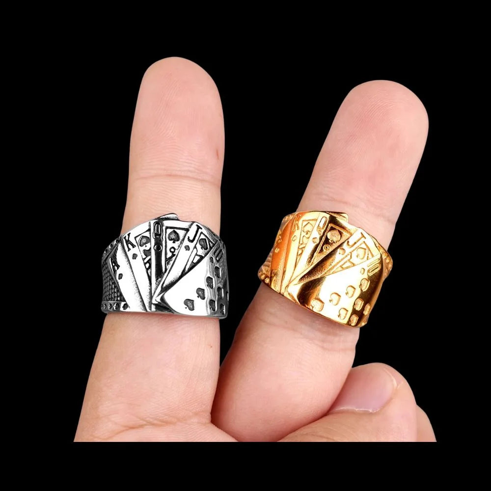 Straight Flush Poker Biker Ring – Hip-Hop Glücksbringer Schmuck für Männer