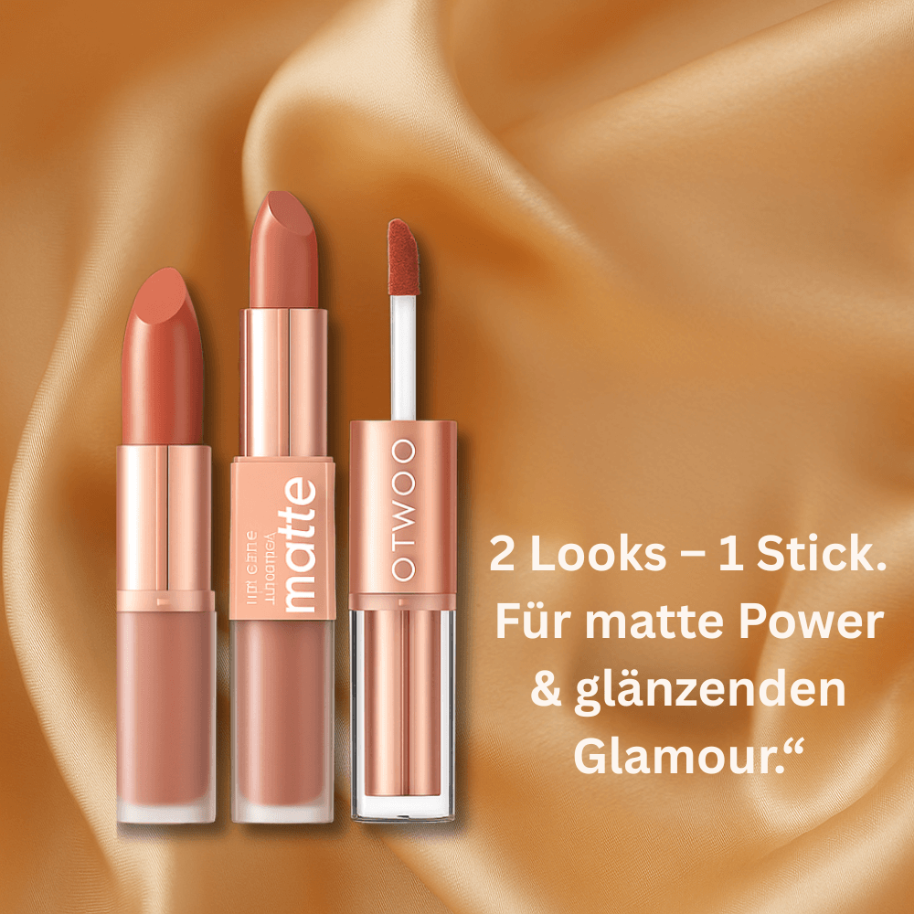 2-in-1 Textur – Matte Lippenstift + Glossy Lip Tint in einem